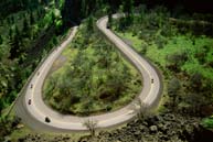 "The best and most varied types of riding available in the entire Pacific Northwest: riverside highways, narrow rural byways, canyon side twisties, relaxed, arid, two-lane sweeping turns, running along travel perfect motorcycle roads near Condon, smooth sweeping turns running along gravel mountains, old, carefully-engineered historic highways, a few miles blasting interstates."